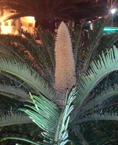 Tối ngày 1/1, nhiều du khách trong và ngoài nước, cũng như người dân Cần Thơ rất ngạc nhiên, thích thú khi chứng kiến một cây vạn tuế trổ bông.