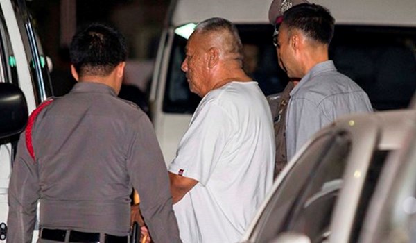 Ông Pongpat (áo trắng) bị cảnh sát bắt giữ