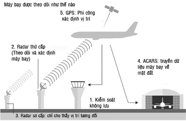 Máy bay sử dụng hệ thống ADS-B để xác định vị trí qua một vệ tinh, sau đó phát tín hiệu vị trí đến một máy bay khác và đến trạm thông tin trên mặt đất. Tại Mỹ, tất cả các máy bay đều được yêu cầu phải trang bị hệ thống ADS-B từ nay tới tháng 1/2020. Hệ thống này được dự đoán sẽ thay thế các hoạt động tìm kiếm dấu vết máy bay dựa trên radar trong tương lai.