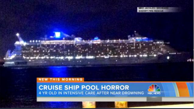 Một cậu bé bốn tuổi đã phải nhập viện trong sự chăm sóc đặc biệt sau khi suýt chết đuối trong hồ bơi sóng trong tàu du lịch, cơ quan chức năng cho biết vào Chủ Nhật vừa qua. Mike Jachles, một phát ngôn viên của Hạt Broward, Florida, nói với NBC News rằng nhân viên cứu hỏa và nhân viên y tế nhận được một cuộc gọi khẩn cấp y tế vào thứ Bảy từ tàu du lịch Oasis of the Seas của Royal Caribbean sau khi một hành khách trên trên boong tàu nhìn thấy một cậu bé bốn tuổi đang chìm nghỉm trong hồ bơi. Các nhà điều tra xét sự cố gần tử vong này là vụ tai nạn, một cuộc điều tra cho thấy cậu bé đang đi lạc mẹ. Cậu bé chìm dưới nước gần sáu phút trước khi được cứu, theo một tuyên bố từ văn phòng của cảnh sát trưởng.