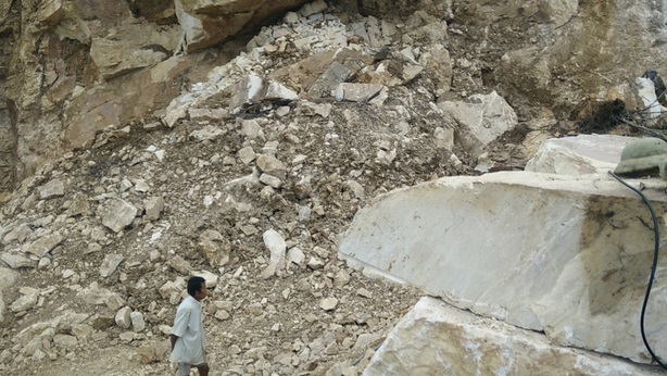 Ông Quế bảo vệ mỏ đá 2 năm nay dẫn PV đến chỗ sập đá.