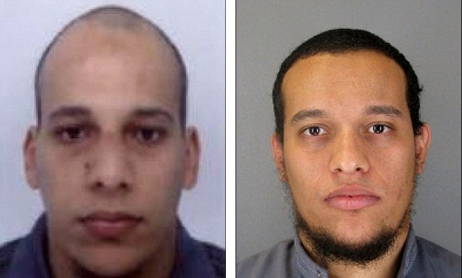 2 trong số 3 kẻ tình nghi, từ trái sang: Cherif Kouachi (32 tuổi) và anh trai Said Kouachi (34 tuổi).