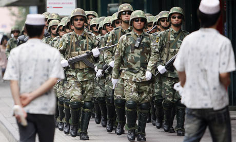 Cảnh sát bán quân sự tuần tra tại Tân Cương.