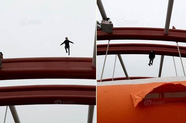 Hai giờ sau đó, khi thấy không thể thương thuyết được, đội cứu hộ đã trải đệm khí phía dưới trên một diện tích rộng để đỡ thanh niên này khi cậu ta nhảy xuống.