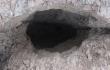 Hố có chiều dài hơn 10m, rộng gần 1m khiến nước và cá trong ao của một gia đình trôi tụt hết.
