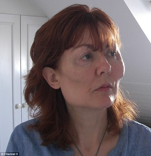 Cô Alex Laird, 53 tuổi sống tại Ireland bị biến dạng, nhiễm khuẩn mặt nghiêm trọng sau khi tiêm chất độn xóa nếp nhăn.