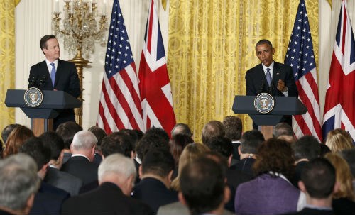 Thủ tướng Anh David Cameron và Tổng thống Mỹ Barack Obama tại cuộc họp báo chung tại Washington - Ảnh: Reuters