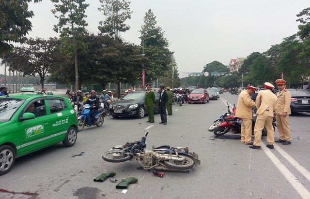Ngay sau khi vụ việc xảy ra, lực lượng CSGT Công an TP Vinh đã lập tức có mặt điều tiết giao thông đồng thời điều tra làm rõ nguyên nhân vụ tai nạn.