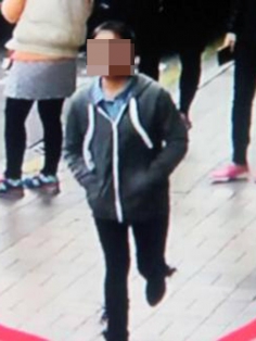 Bé gái 12 tuổi, cao khoảng 1,4 m, khi bước vào cửa hàng mặc bộ quần áo trắng – hồng nhưng sau khi rời khỏi cửa hàng đã thay đổi trang phục để mọi người không nhận ra.