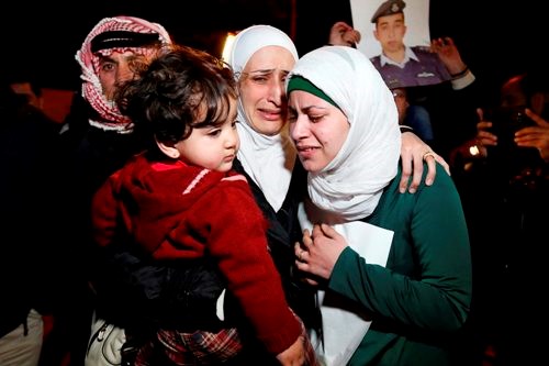 Hàng trăm người, bao gồm người thân của ông Kasaesbeh, tập trung trước Văn phòng Thủ tướng Jordan vào ngày 27.1, kêu gọi chính quyền nước này đáp ứng yêu sách của IS.