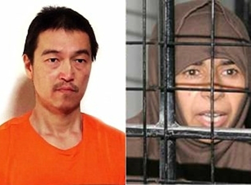 IS đòi đổi mạng con tin Nhật Kenji Goto (trái) lấy sự tự do của nữ tù nhân Sajida al-Rishawi. Ảnh: news.com.au