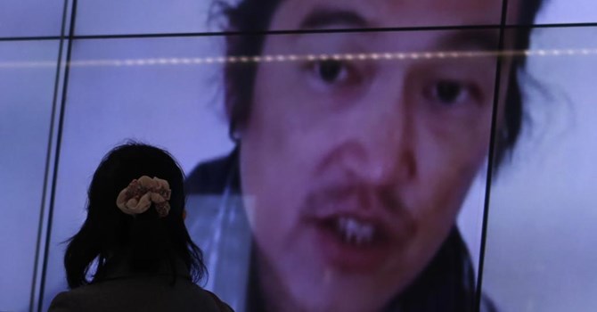 Hình ảnh con tin Nhật trên truyền hình nước này. Ảnh REUTERS/Yuya Shino