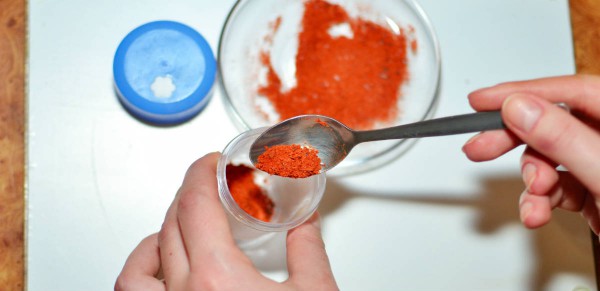 2. Vào ngày đầu tiên của tuần, đổ một phần tư của chai thủy tinh với bột ớt cayenne. Đổ rượu vừa đủ để nó đẻ che phủ phần bột.