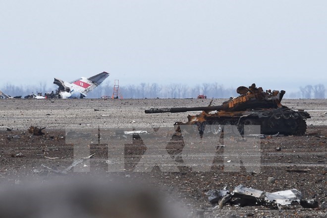 Cảnh đổ nát tại nhà ga sân bay quốc tế Sergey Prokofiev ở Donetsk, miền Đông Ukraine sau các cuộc giao tranh. (Nguồn: AFP/TTXVN)