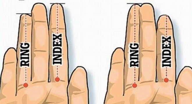 Theo nghiên cứu, nếu ngón tay đeo nhẫn của đàn ông dài hơn ngón trỏ thì anh ta có lượng testosterone cao. Nếu ngón tay đeo nhẫn có cùng kích thước hoặc nhỏ hơn ngón trỏ thì anh ta có lượng testosterone ít hơn.