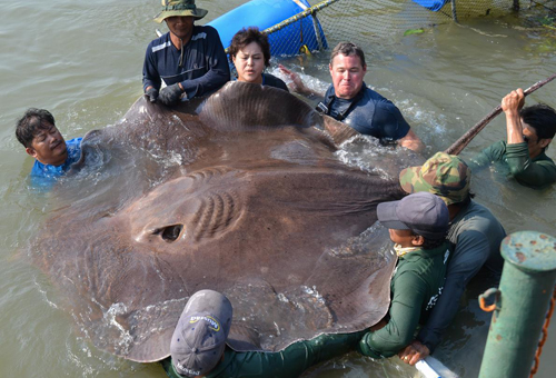 BANGKOK - Các nhà khoa học ở Thái Lan đã vừa bắt được một con cá đuối nặng 660 pound (hơn 300 ký), có thể là con cá nước ngọt lớn nhất từ trước đến nay. Con cá được tìm thấy ở sông Mae Klong, chảy qua khu vực huyện Amphawa, ở độ sâu khoảng 20 mét. Ông Nantarika Chansue, giáo sư Đại học Chulalongkorn, cho biết con cá có chiều ngang 2.4 mét, chiều dài 4.3 mét.
