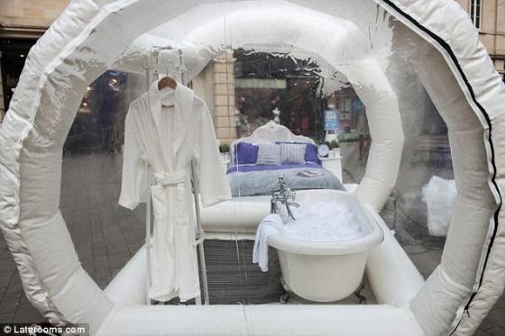 Tại SouthGate, con phố sầm uất nhất ở thành phố Bath (Anh) có Bubble Hotel (khách sạn bong bóng) với phòng nghỉ trong suốt, đặt giữa con phố đông người qua lại. Bạn có thể thử cảm giác của mình khi bước vào khách sạn này, vấn đề là có thể tắm nhưng không thể đi vệ sinh ở đây vì không có toilet.