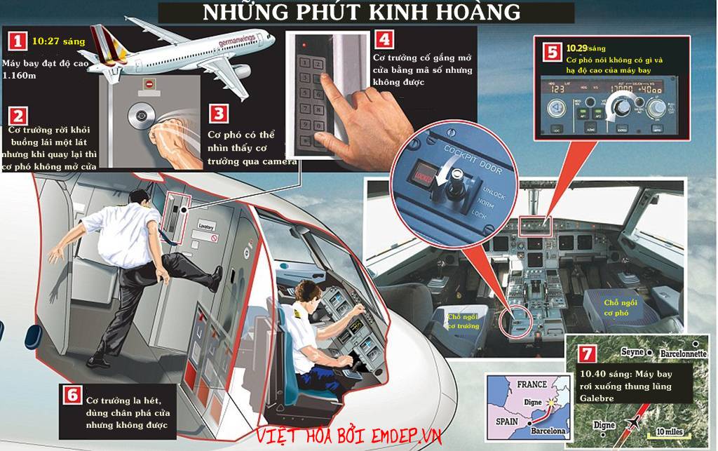 Đó là câu chuyện của Lubitz, còn cơ trưởng Patrick Sondenheimer thì sao? Theo dữ liệu trích xuất từ hộp đen, cơ trưởng đã đi ra ngoài. Khi quay lại, cửa đã bị khóa ông đập cửa, yêu cầu cơ phó mở cửa qua bộ đàm nhưng bất thành. Có thông tin nói, vị cơ trưởng dùng rìu để cố gắng phá cửa bọc thép nhưng không được.