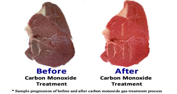 Khí carbon monoxide giúp trong việc làm miếng thịt trông tươi ngon như mới ngay cả khi nó đã bị ôi và bị nhiễm vi khuẩn như E-coli, Campylobacter, và thậm chí Salmonella. CO phản ứng tạo màu tươi ngon cho thịt và làm cho nó trông đỏ tươi như mới. Ngay cả những mùi hôi từ chúng cũng được loại bỏ mà không ai có thể phát hiện ra.
