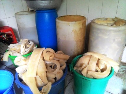 Sau khi lập biên bản xử lý, lực lượng chức năng đã ra quyết định xử phạt, đồng thời tịch thu và đưa đi tiêu hủy 234kg da lợn đang ngâm và 4kg hóa chất dạng bột và tinh thể.