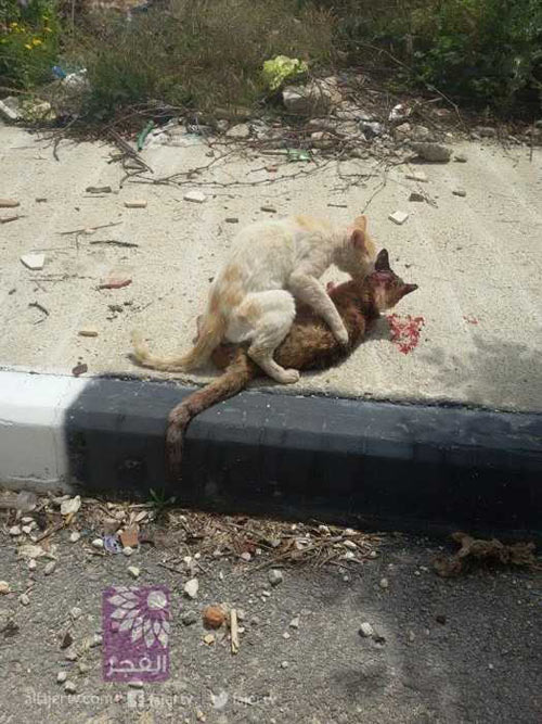 Theo đó, vào ngày 15/4, 1 chú mèo bị ôtô đâm chết nằm giữa đường phố ở vùng ngoại ô thành phố thành phố Tulkarem, Palestine.