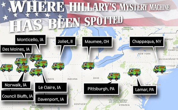 Jennifer Palmieri, giám đốc truyền thông trong chiến dịch tranh cử của bà Clinton, cho biết cựu ngoại trưởng Mỹ rất thích chiếc xe và đặt biệt danh cho nó là "xe Scooby Doo", theo tên bộ phim hoạt hình nổi tiếng thời thập niên 1970. Nhà sản xuất "xe Scooby Doo" là công ty Explorer, trụ sở ở Warsaw, bang Indiana, theo Bloomberg. Ảnh: AFP