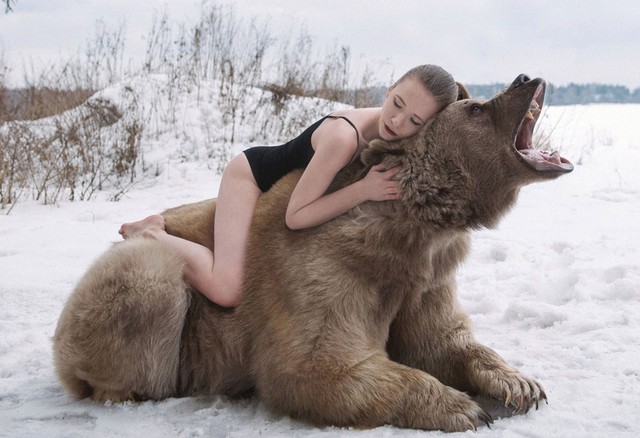 Để giảm tải nỗi sợ hãi cũng như kéo gần khoảng cách giữa các người mẫu và chú gấu, nhiếp ảnh gia người Nga đã để cho các cô người mẫu phải mặc những bộ quần áo lông có màu sắc trùng với màu của chú gấu và bộ ảnh cũng được thực hiện tại một khu rừng.