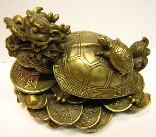Những con rùa cũng quan trọng trong phong thủy vì nó mang trên mình bản đồ tử vi. Nhìn vào mai rùa, bạn có thể thấy những hình lục giác trông giống như những ô bát quái. Truyền thuyết Trung Quốc tương truyền rằng khi những con rùa thần thoại bò lên từ lòng sông mang những bí mật của bát quái, nguồn gốc của phong thủy.