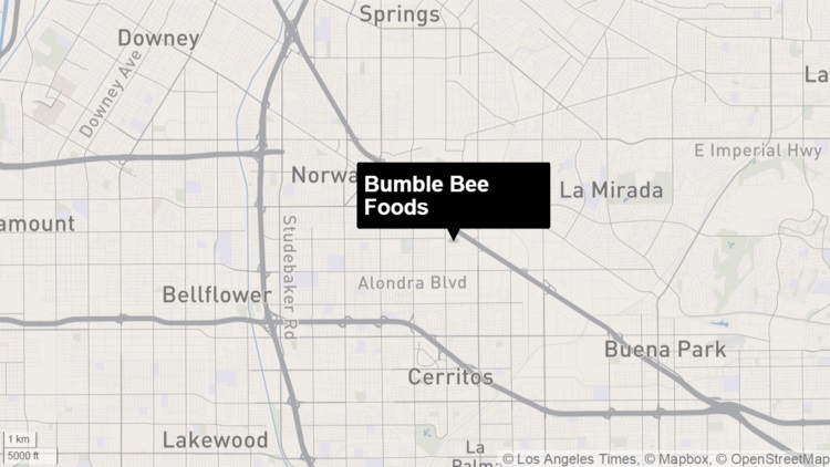 Hôm qua, hãng thực phẩm Bumble Bee có hội sở chính ở San Diego cùng hai nhân viên bị cáo buộc vi phạm an toàn lao động gây ra cái chết của một công nhân tại nhà máy ở Santa Fe Spring hồi năm 2012.