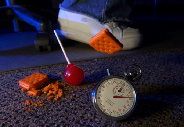 Đồ ăn "được" đánh rơi gồm bánh mì nướng, mì ống, bánh quy và kẹo dẻo, thời gian thực phẩm "góp mặt" trên sàn là khoảng từ 3 - 30 giây.