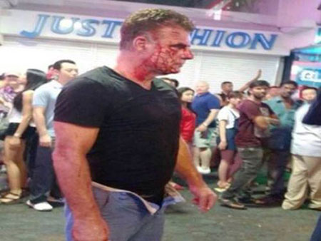 Ông Michael bị người chuyển giới ở Pattaya đánh chảy máu đầu.