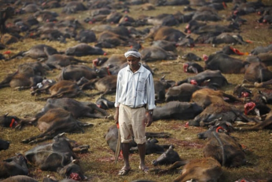 Những hình ảnh mà báo chí các nước đưa tin về lễ tế thần bằng 5.000 con trâu ở Nepal.