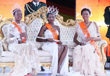Hoa hậu Zimbabwe bị tung ảnh 'nóng' lên mạng Emily Kachote (giữa) và hai á hậu trong đêm chung kết.Ảnh: Globalbeauties