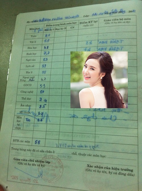 Từng được ghi nhận là hotgirl học giỏi, tuy nhiên, một bảng điểm không mấy sáng sủa trong năm học 2008-2009 của hot girl này cũng bị rò rỉ khiến nhiều người cảm thấy tiếc cho hình ảnh đẹp của cô.