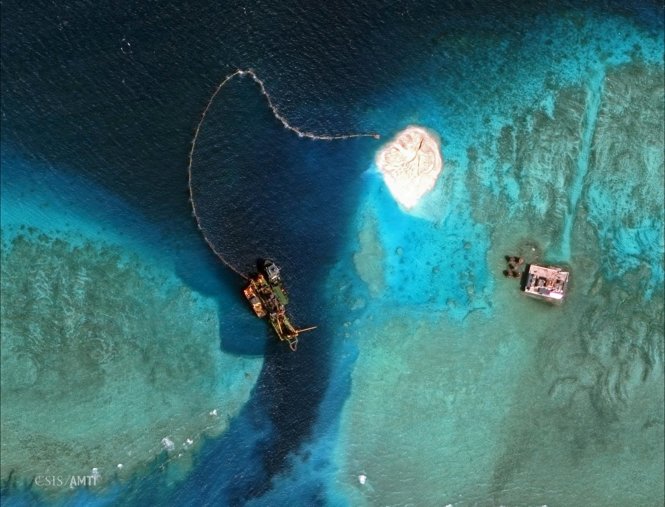 Trung Quốc xây dựng trái phép ở bãi đá Vành Khăn (ảnh do vệ tinh chụp ngày 1-2-2015) - Ảnh: Reuters