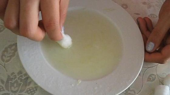 Vắt chanh ra một chiếc đĩa, dùng bông gòn thấm nước chanh xoa nhẹ lên các vùng cần làm trắng