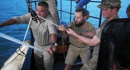 Trong chuyến thăm New Zealand và Úc, Hoàng tử Anh Harry đã gây "sốt" cộng đồng mạng khi hình ảnh hoàng tử Harry ngồi trên mình con cá sấu dài 3,1 m bị trói chặt trên một con thuyền ở cảng Darwin vào ngày 16/5.