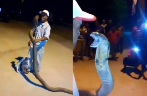 Sau đó, người đàn ông tuột tay và để rơi rắn hổ mang chúa xuống đất. Tuy vậy, nó vẫn không tấn công ông ta. Nếu không thì chắc chắn ông ta khó sống.