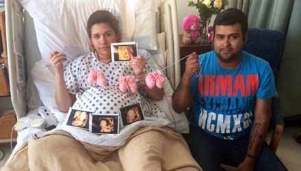 Vợ chồng chị Silvia Hernandez và anh Raul Torres khi chờ đón các con chuẩn bị chào đời tại Trung tâm y tế Corpus Christi ở Texas (Mỹ). Ảnh: Abcnews.