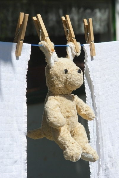 Nếu không thể cho thú bông vào máy để giặt, thì có thể sử dụng khăn sạch thấm nước xà phòng rồi lau sạch phần lông bên ngoài. Sau đó xả sạch khăn lau lại lần cuối cùng. Rồi phơi thú bông ngoài trời nắng cho khô.