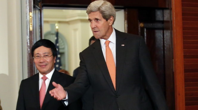 Phó thủ tướng Phạm Bình Minh và Ngoại trưởng Mỹ John Kerry.