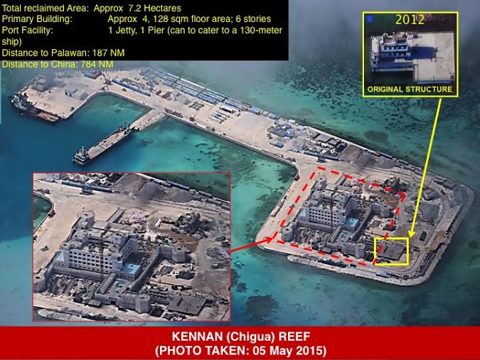 Tướng Guillermo A. Molina cho biết, cập nhật mới nhất trong trong tháng 5/2015 của Bộ Quốc phòng Philippines cho thấy TQ đang gấp rút xây dựng nhiều công trình tại các hòn đảo tại quần đảo Hoàng Sa và Trường Sa. Qua những tấm ảnh mới chụp trong tháng 5 của Bộ Quốc phòng Philippines, có thể thấy các hòn đảo đã bị TQ “làm nở” gần 20 lần so với diện tích ban đầu, chỉ trong khoảng 3 năm.