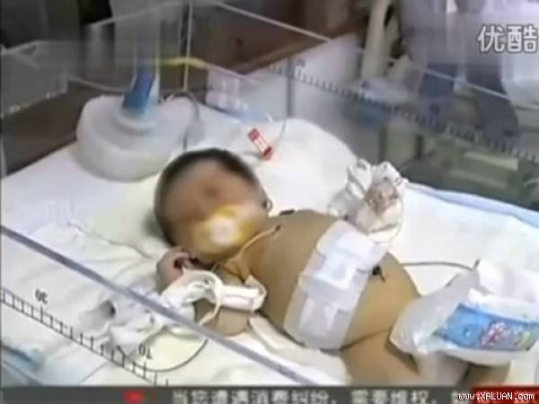 Các bác sĩ ở Giang Tô, TQ đã tỏ ra nghi ngờ khi em bé chào đời chỉ nặng 3kg nhưng có bụng rất bất thường.