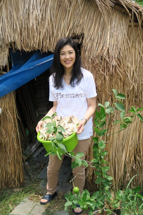 Ngày 31.5, người dân Thái Lan, đặc biệt là những người ủng hộ bà Yingluck chia sẻ với nhau những hình ảnh bà đang ươm nấm trong mái nhà lá đơn sơ. Trông khuôn mặt bà rạng rỡ, tươi cười cầm trên tay những ụ nấm vừa mới thu hoạch.