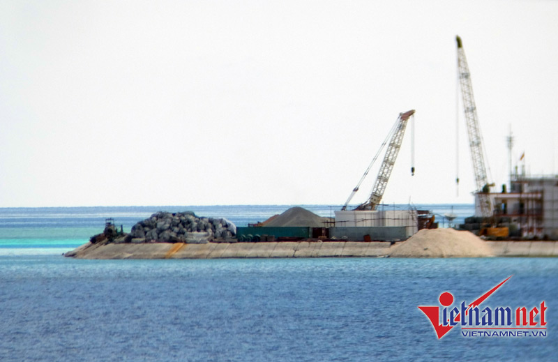 Hình ảnh cải tạo trái phép của TQ tại bãi đá Huy Gơ. Ảnh: Huy Phong