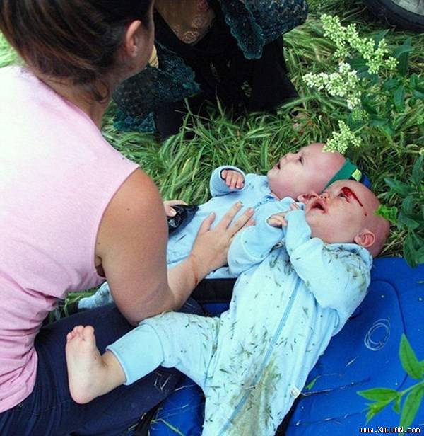 Hai bé song sinh sống sót kỳ diệu sau khi bị xe tông.