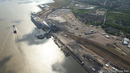 68 người nghi nhập cư trái phép bị phát hiện tại cảng ở Essex. Ảnh: Harwich International Port