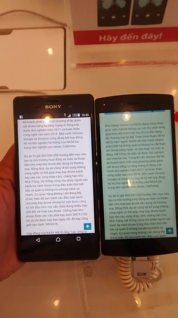 Màn hình Bphone (phải) hiển thị hình ảnh kém hơn Sony Xperia Z3 và bị ám xanh - Tinh tế