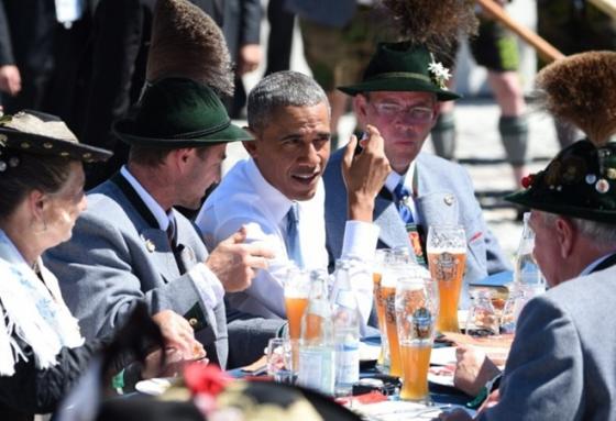 Vietbf.com - Ngay sau khi chuyên cơ đáp xuống lănh thổ Đức hôm 7/6 để dự hội nghị thượng đỉnh của nhóm G7, được Thủ tướng Angela Merkel chiêu đăi bia ngay khi Tổng thống Barack Obama đến Đức để dự hội nghị thượng đỉnh của nhóm G7. Tuy nhiên, trước khi có thể bắt đầu công việc, bà Merkel đă tiếp đăi ông với một bữa sáng truyền thống của người Bavaria bằng xúc xích trắng, bánh xoắn và bia Đức.