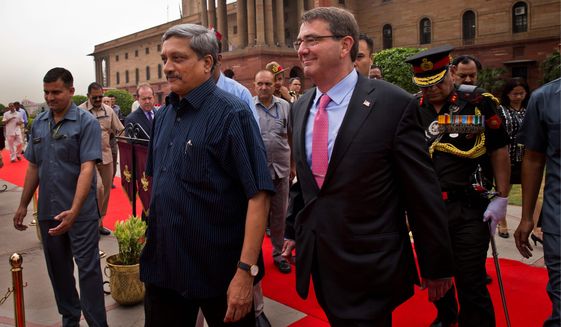 Tại New Delhi, ông chủ Lầu Năm Góc và người đồng cấp bên phía Ấn Độ Manohar Parrikar đã đặt bút kí vào bản hiệp ước quốc phòng kéo dài 10 năm, trong đó nhấn mạnh việc tăng cường hợp tác quân sự đôi bên.